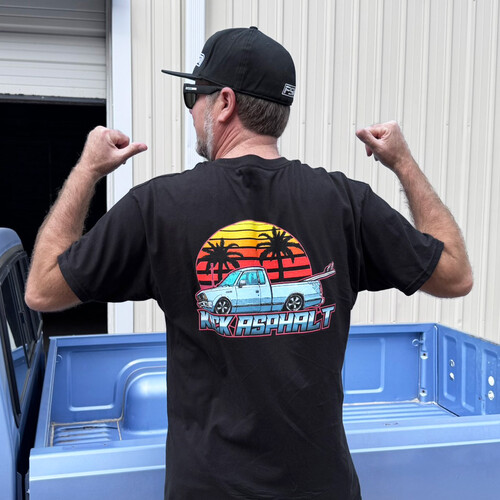 To celebrate my favorite time of the year and my summertime vehicle of choice I’ve created the Kick Asphalt shirt in collaboration with designer Garrett Olsen. Like the truck, I think you’ll be smiling every time you see this shirt hanging in your closet and if you don’t have a summer-ready ride yet, wearing this cuddly soft shirt will surely motivate you to get back to work in the garage and with the door open so strangers can wander in and ask silly questions like, “When will your car be done?”.
