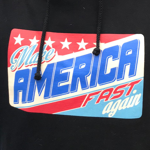 Since 2018 is an election year, and the world deserves a better, faster America, Make America Fast Again is now available as a hoodie.
