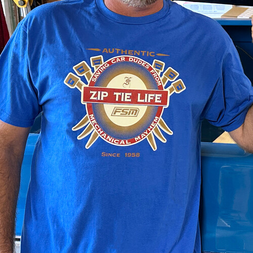 The Ty-Rap was here to stay and would be copied for decades to come. Whether he knew it or not, Maurus changed the world by saving it from itself. Never again would messy wiring sabotage our hot rods and for that we salute Mr. Logan with the Zip Tie Origin shirt.